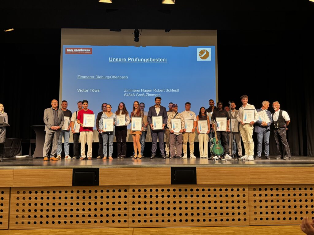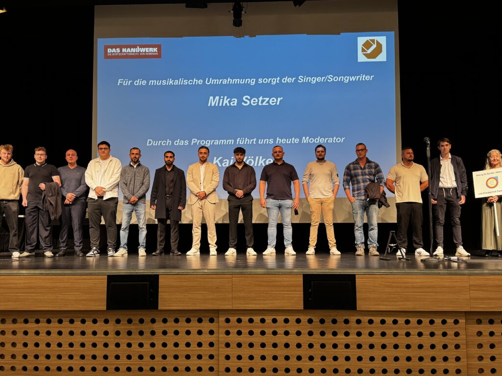 Am vergangenen Wochenende fand die feierliche Freisprechung der Kreishandwerkerschaft Darmstadt-Dieburg statt. Rund 200 Auszubildende aus verschiedenen Gewerken erhielten in einem festlichen Rahmen ihre Gesellenbriefe. Mit dabei waren auch etwa 25 ehemalige Schülerinnen und Schüler der Erasmus-Kittler-Schule aus den Bereichen Anlagenmechanik und Kraftfahrzeugtechnik, die nun erfolgreich ihre Ausbildung abgeschlossen haben.