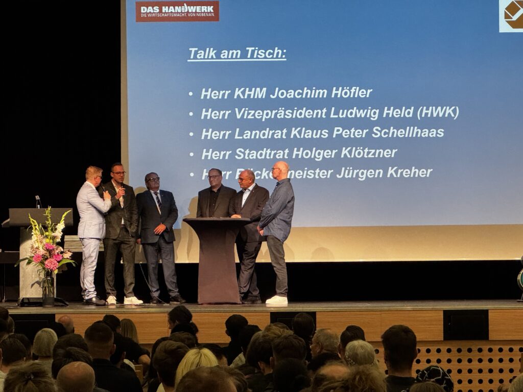 - Politik & Wirtschaft: Holger Klötzner (Schuldezernent der Stadt Darmstadt) und Landrat Klaus Peter Schellhaas diskutierten über die Zukunftsfähigkeit des Handwerks und dessen Bedeutung für die Region.